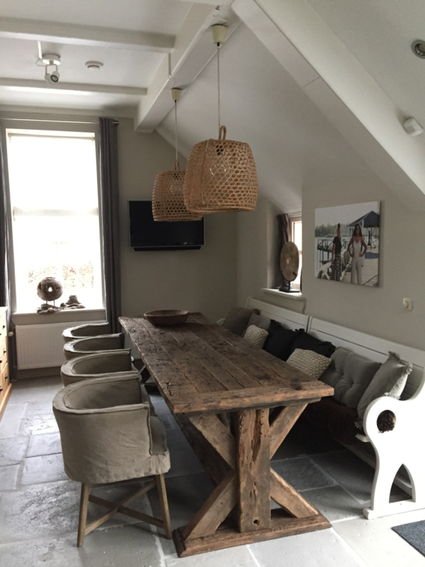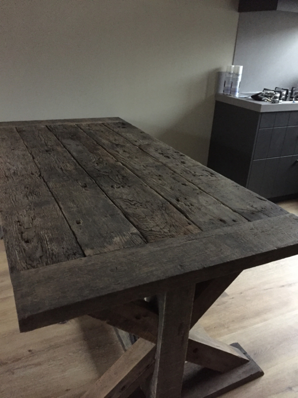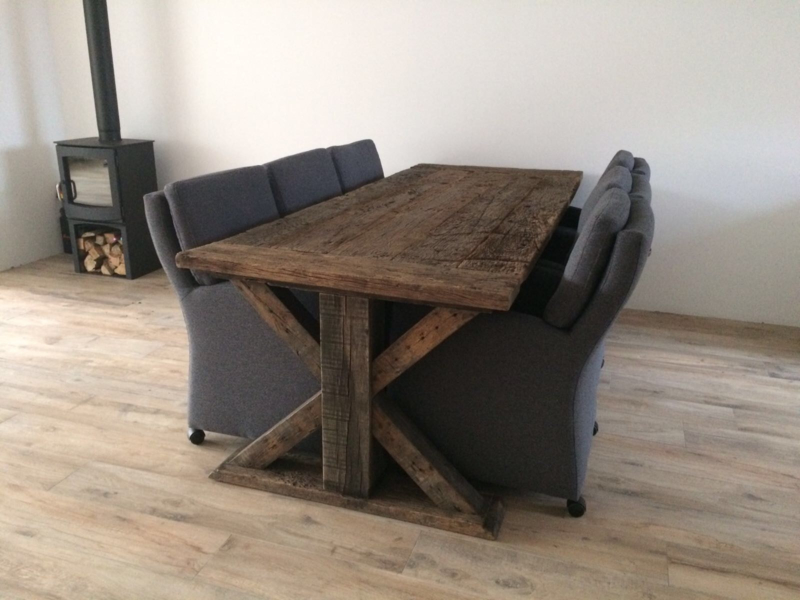 OverzichtDe wagondelen zijn tientallen jaren oude eiken planken afkomstig uit oude Franse wagons. Deze planken hebben door weer en wind en laden en lossen deze rustieke uitstraling gekregen.